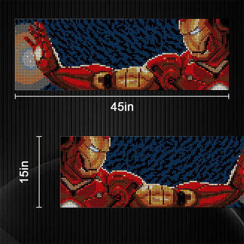 Marvel Iron Man Pixel Art measures 15” (38.4cm) wide, 45” (115cm) long and 0.7” (2cm) depth.