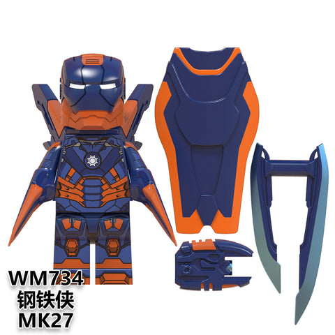 • This set includes Iron Man MK36, Iron Man MK 27, Iron Man MK 30, Iron Man MK 31, Iron Man MK 21, Iron Man MK 42, Iron Man MK 50, and Rescue Suit MK 49