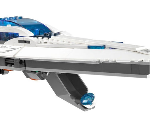 - Javelin spaceship features opening cockpit to release bombs, rotating wings for flight and landing mode, rear compartment with Super Jumper function