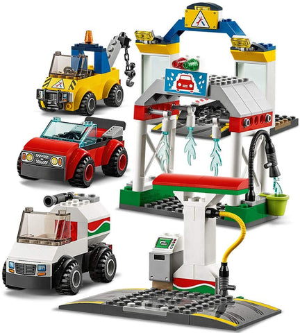 This 4+ toy set is specially designed to be fun and easy for preschoolers and youngsters, featuring a car wash building, plus a sports car, tow truck and gas tanker, garage and gas station pump stand with special Starter Brick chassis and bases that let even first-time builders experience the pride of constructing buildings, vehicles and more, all on their own.