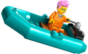 What’s in this building set? – A prison toy island with a cliff face, prison, police boat toy, dinghy, helicopter toy, 3 police officers and 4 prisoner minifigures, plus police dog and shark toy.