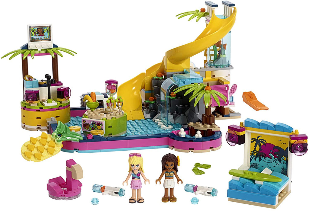 - Fire your little builder’s imagination with Friends swimming pool set which includes a slide, waterfall, wave machine, juice bar and DJ booth—perfect for kids to enjoy social play with their friends!