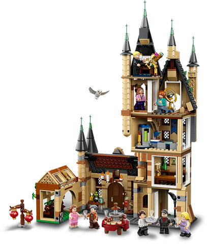 • Kids can build the multi-level Hogwarts Castle Astronomy Tower and explore all it has to offer while recreating scenes from the Harry Potter movies.