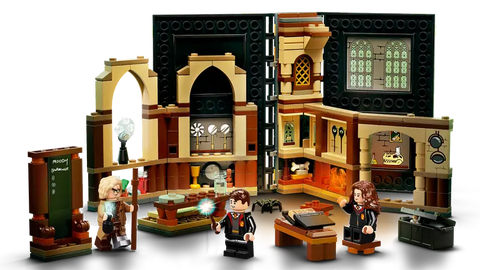 • Hogwarts classroom – Includes Mad-Eye Moody, Hermione Granger and Neville Longbottom minifigures, plus lots of authentic accessories, including a blackboard, trunk, potion bottles, desk and chairs.