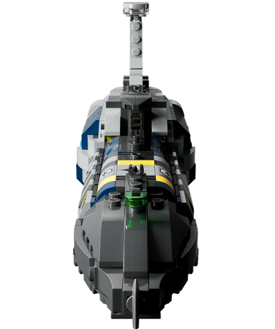 Connector bricks and clips even allow the front half of the starship to be separated from the rear, just as it broke in half during its fiery descent into Coruscant’s atmosphere.