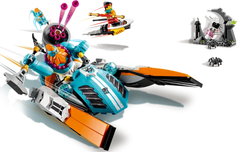 Young heroes can play out exciting rescue missions with this Monkie Kid playset, featuring Sandy’s Speedboat and the Spider Queen’s mech and Silken Web Cave.