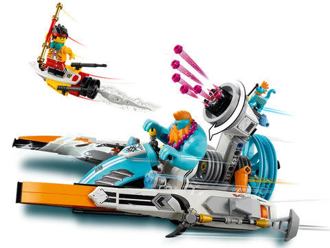 Cool speedboat playset for role-play action. This fun-packed set features an awesome speedboat, mech, cave build and 3 minifigures for limitless solo or social play.
